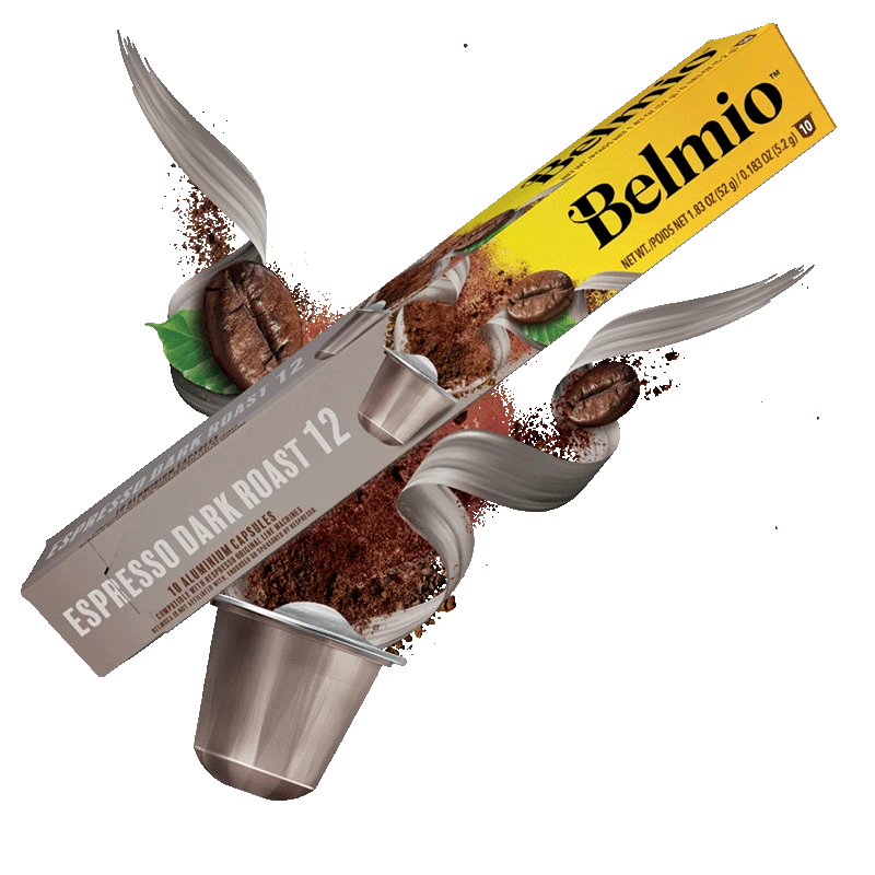 - Capsules de café Espresso Dark Roast 12 par Belmio. Torréfaction intense pour un goût corsé et riche. Compatibles Nespresso. Boîte de 10 capsules (52g).