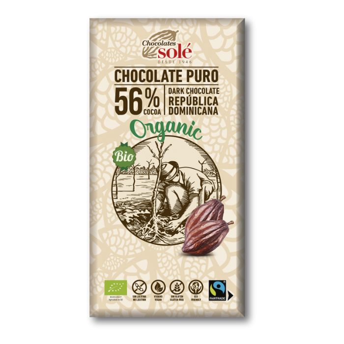 - Savourez le Chocolat Noir 56% de Cacao Bio de Chocolates Sole, un chocolat délicatement équilibré entre douceur et intensité, fabriqué avec du cacao issu de l’agriculture biologique.