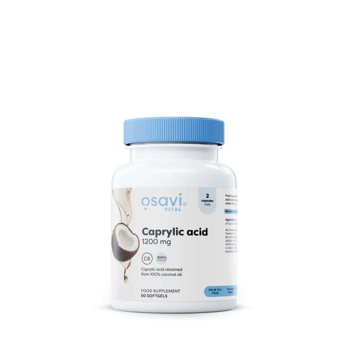 Acide caprylique (C8) 1 200 mg par portion pour compléter l’apport en acides gras à chaîne moyenne.