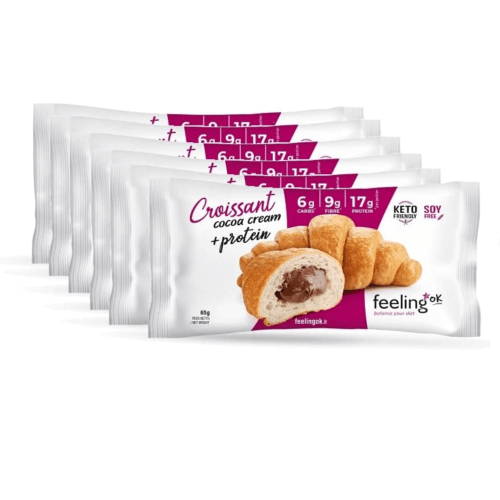 Les croissants protéinés de Feeling OK sont des pâtisseries généreusement fourrées au chocolat, au goût 100% italien, qui s’adaptent parfaitement aux régimes sportifs ou de perte de poids.