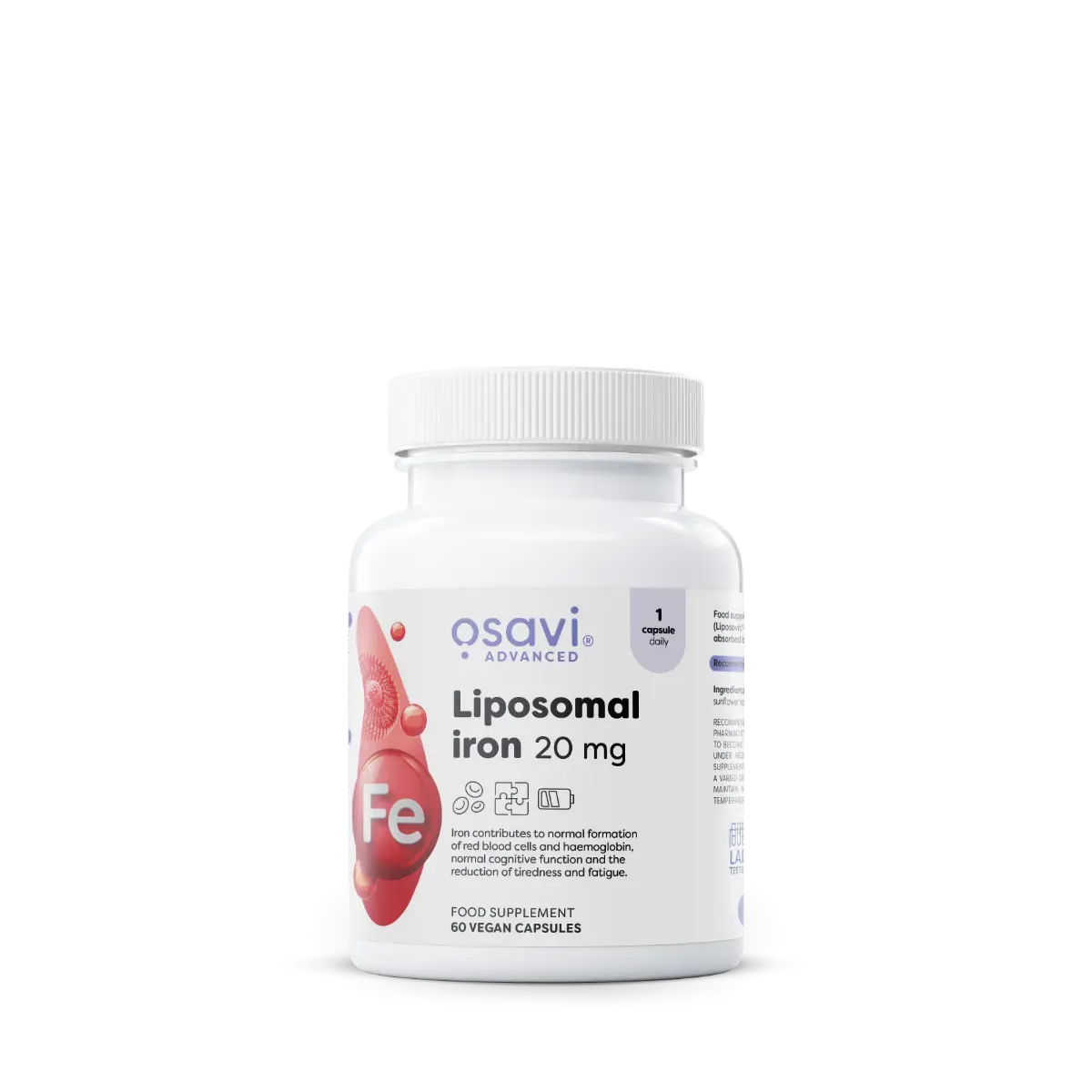 Fer liposomal microencapsulé pour soutenir la formation des globules rouges et réduire la fatigue.